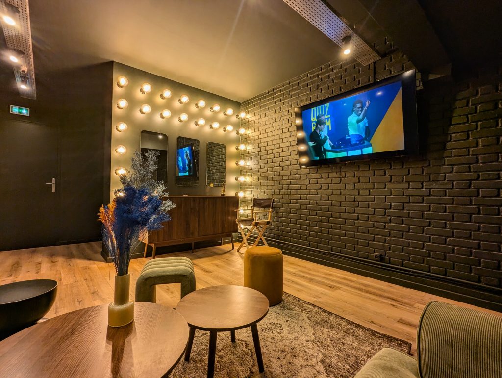 Plongez dans l’ambiance feutrée des loges d’artistes. Miroirs de star, lumières tamisées et ambiance confidentielle : cette salle vous prépare pour le show et vous fera sentir comme la star de la soirée.